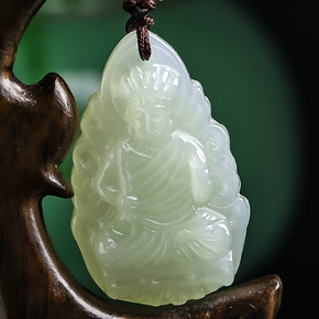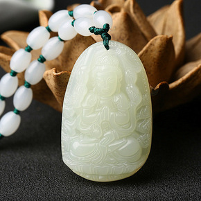 新疆和田玉青玉观音牌吊坠和田玉项链 男款如意观音挂...