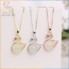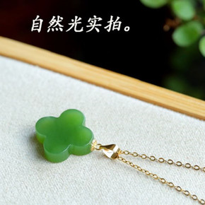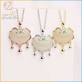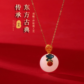 新品原创925银古法鎏金天然和田玉珐琅吊坠锁骨女 ...