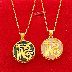 金品惠越南沙金镶古法金福字平安扣吊坠金镶和田玉女士...