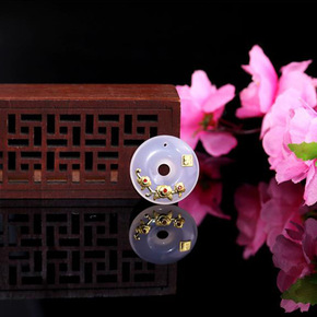 天然冰种玉髓花开富贵吊坠金镶玉平安扣玉坠保险公司银...