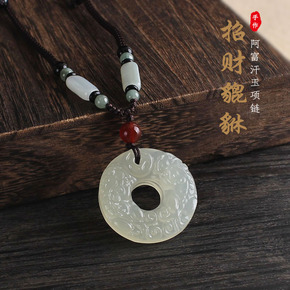 新疆青海和田玉平安扣吊坠 和田青海料平安扣锁骨链批...
