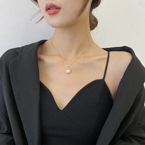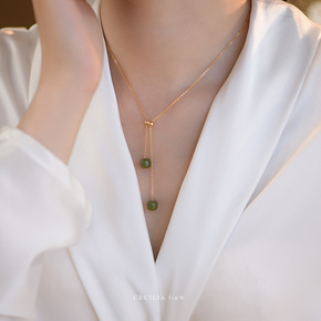 玺品珠宝气质项链女锁骨脖子轻奢复古V领Y形双珠 1...