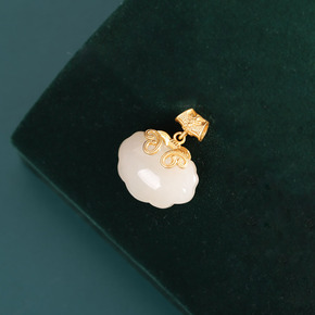人品银品 s925银镀金和田玉如意吊坠 时尚国风女...