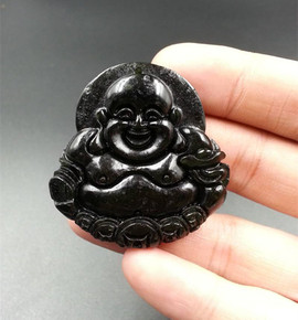 批发 玉石新疆和田墨玉大度佛金钱佛玉挂件吊坠地摊货...