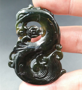 批发玉石A货新疆和田玉墨玉凤凰吊坠复墨玉镂空凤凰吊...