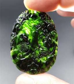 A货玉石新疆和田玉墨玉鲤鱼跳龙门玉挂件玉吊坠批发...