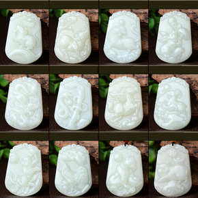 手工雕刻新疆玉石和田玉鼠牛虎兔龙蛇马羊猴鸡狗猪十二...