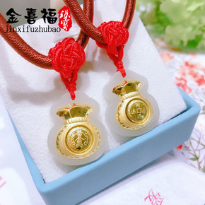 金镶玉福袋吊坠项坠 和田玉足金时来运转财源滚滚黄金...