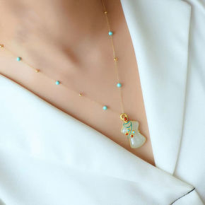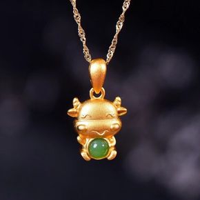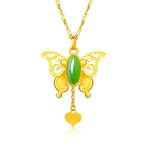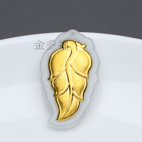 金镶玉树叶吊坠 999足金镶嵌和田玉挂饰男女情侣款...