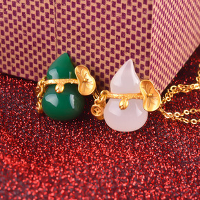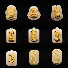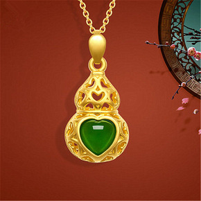 时尚沙金吊坠和田玉金葫芦吊坠平安挂坠 金镶玉吉祥如...