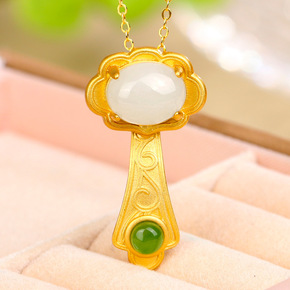 金镶玉925银镶古法金吊坠和田玉如意吊坠女天然白玉...