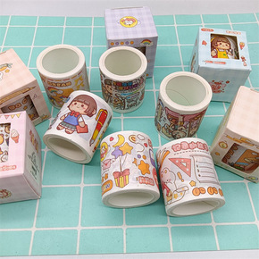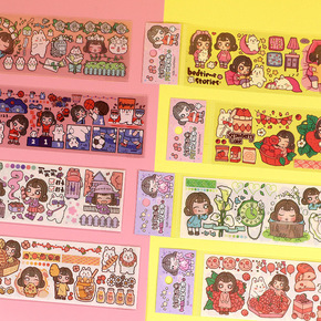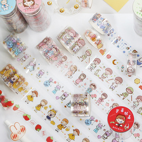 创意可爱卡通人物手账胶带少女心DIY手账素材记事本...