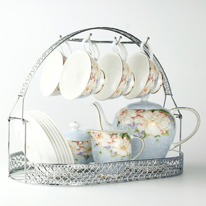 厂家批发咖啡杯套装 欧式咖啡杯架 杯碟挂架15头欧...