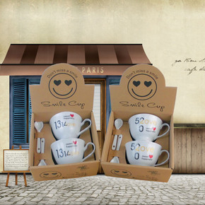 北欧简约大理石纹陶瓷咖啡杯碟套装心形情侣杯碟英式下...