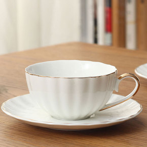 简约咖啡杯碟套装 ins风下午茶桃心情侣描金边陶瓷...