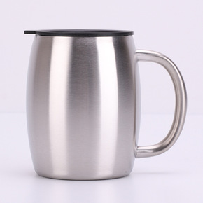 批发礼品外贸双层不锈钢啤酒杯14oz咖啡杯手柄水桶...