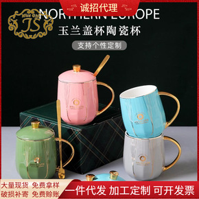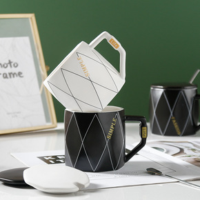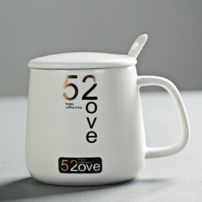创意陶瓷杯子马克杯带盖勺情侣早餐杯牛奶杯家用咖啡杯...
