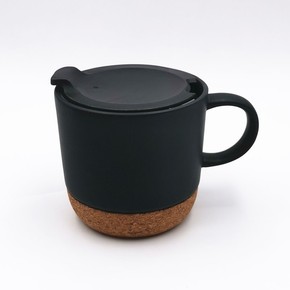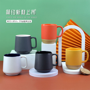 现货哑光黑色马克杯软木底带盖杯子胖胖陶瓷杯印log...