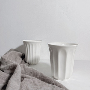 现货库存法式不规则竖纹杯陶瓷杯子 手握杯茶杯 咖啡...
