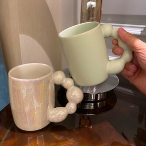 聂家大公主 北欧风创意大小珠珠手把马克杯家用陶瓷牛...