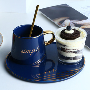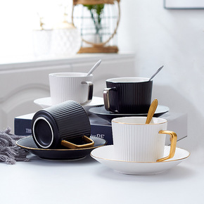 ins北欧式金边圆碟咖啡杯附咖啡匙 办公室家居咖啡...