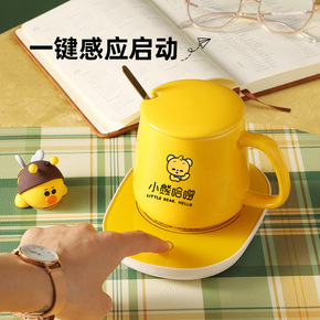 曦美陶瓷 陶瓷恒温杯55度加热杯垫保温暖暖套装杯...