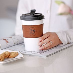 37度原创 北欧ins风带盖皮革随手杯 隔热陶瓷咖...