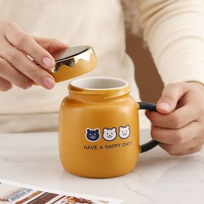 创意小熊镜面杯卡通可爱陶瓷杯子带盖密封喝水杯办公室...