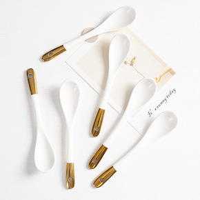 轻奢欧式陶瓷水杯咖啡杯勺子纯手工制作金边陶瓷勺咖啡...