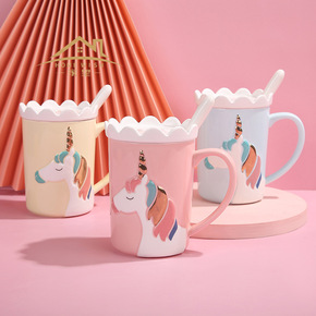 现货 新款创意卡通马克杯带勺盖陶瓷咖啡杯可爱办公室...
