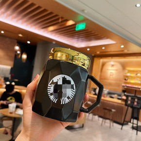 星巴陶瓷杯同款北欧大理石纹陶瓷杯镜面马克杯男女情侣...