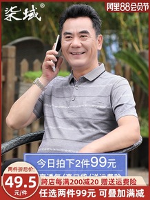 爸爸t恤男士短袖夏季中年爷爷男装中老年人冰丝pol...
