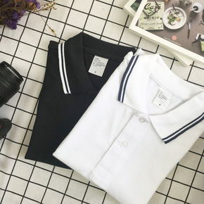 【小不点家】夏日系短袖polo衫男女棉翻领文艺t恤...