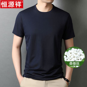 厂家恒源祥夏桑蚕丝纯色圆领冰丝短袖T恤男士商务真丝...