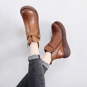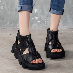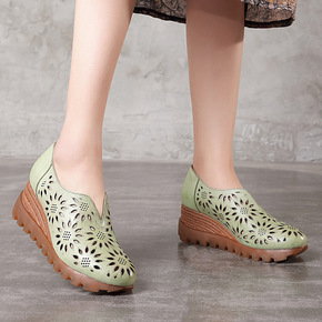 汇族美2020春夏新品真皮增高厚底女鞋原创手工复古...