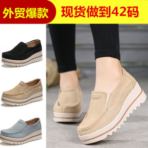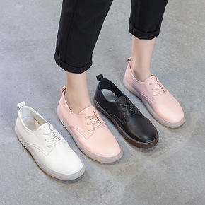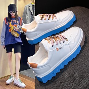 2021秋季新款牛皮小白鞋休闲单鞋韩版厚底松糕鞋两...