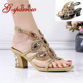 红色婚鞋女2021新款女式法式高跟鞋粗跟水钻方头百...