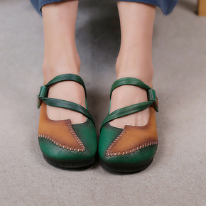 女鞋2021秋季新款时尚复古软底头层牛皮单鞋女手工...
