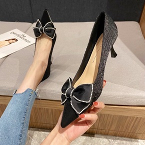 650-16 2021年新款少女蝴蝶结尖头鞋网红...