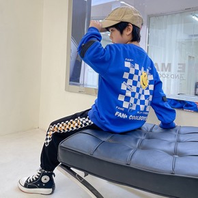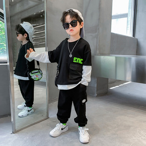 潮牌童装男童秋装套装2021年新款儿童假两件衣服帅...