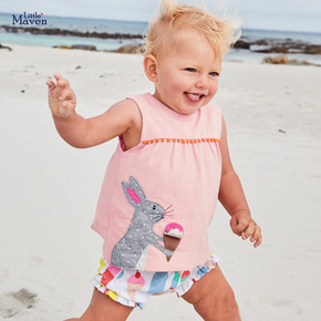 2022外贸女童套装欧美童装夏季新款针织撞色卡通无...