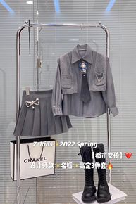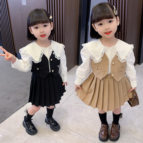 2022春秋季新款女童马甲百褶裙三件套韩版洋气时髦...