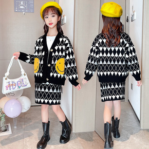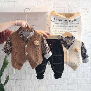 韩国童装2022春新款韩版女童长袖衬衫+毛衣背心马...