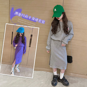 021070潮牌童装女童卫衣套装2021年冬款韩版...
