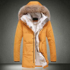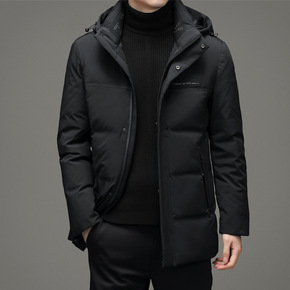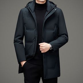 2021冬季新款羽绒服青年男式中长款纯色休闲连帽加...
