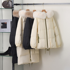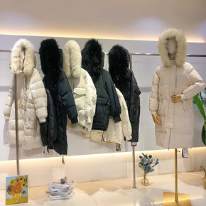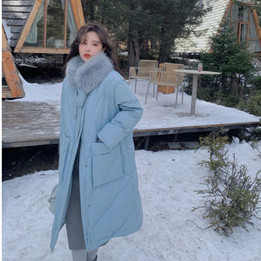 大花媛2021新款羽绒服女狐狸大毛领中长款白鸭绒宽...