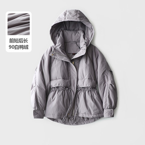 2021冬季新款显白灰紫色90白鸭绒前短后长收腰显...