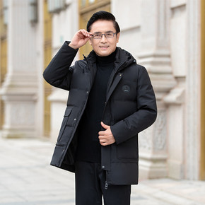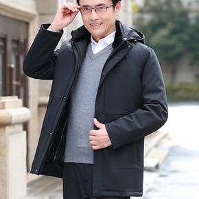 中老年活里活面中长款羽绒服男爸爸装加厚可拆卸内胆休...
