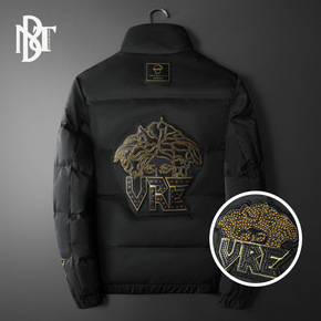 纳川欧洲站冬季新款立领外套潮牌烫钻加厚夹克男士白鸭...