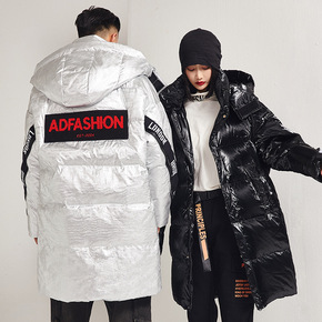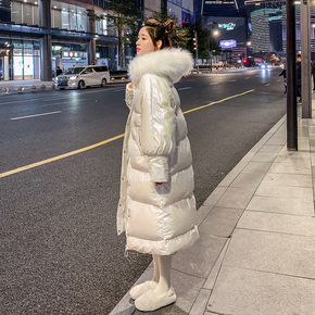 实拍免洗亮面羽绒服女2021年冬新款加厚宽松港风长...